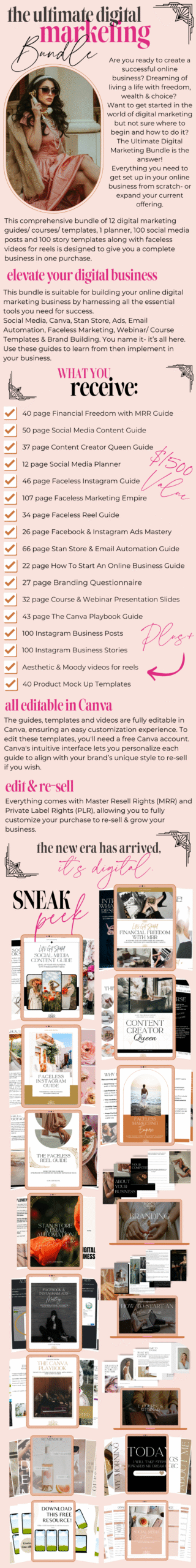 Instant downloadable product immediately on purchase. Comes with MRR & PLR to redesign & re-sell as your own. All editable in Canva.